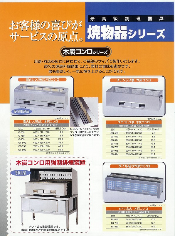 | 日本製炭焼コンロ | 炭焼コンロ | 炭焼コンロサイズ表 | 炭焼コンロ価格表 | |